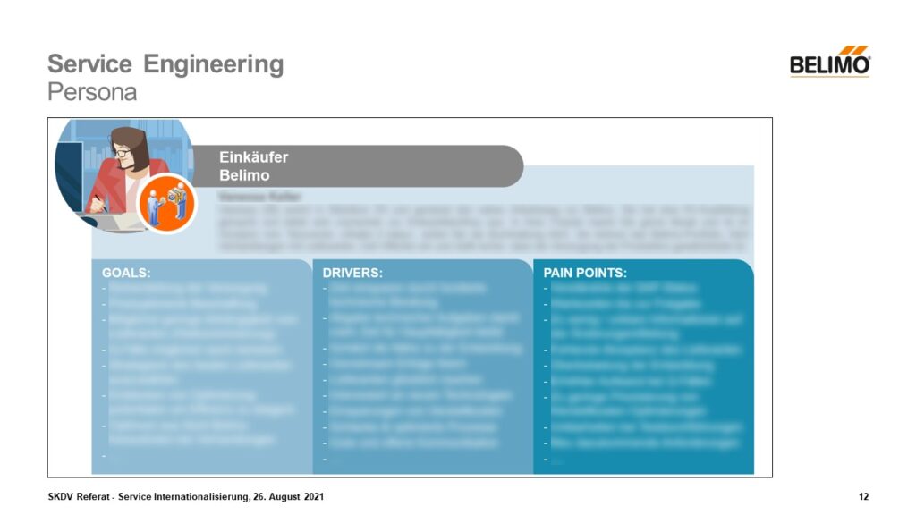 Um die verschiedensten Nutzniesser einer Dienstleistung zu beschreiben, werden fiktive Personas erstellt, welche eine präzise Beschreibung der Eigenschaften eines Benutzers beschreiben und was diese Person erreichen will.