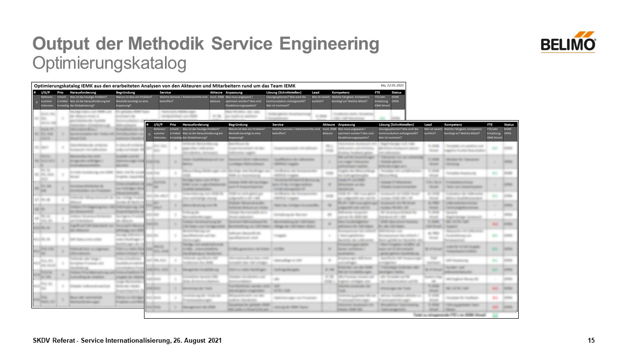 Aus den eben gezeigten Dokumenten, wurden in meiner Arbeit schliesslich 32 konkrete Optimierungen für den Dienstleisteranbieter erarbeitet. Der Katalog beinhaltet die wichtigsten Herausforderungen und Problematiken in Bezug zur täglichen Arbeit des Dienstleisters. Durch diese Verbesserungen konnte so schliesslich eine erhebliche Effizienzsteigerung des Dienstleisters erreicht werden – was natürlich auch mit der Globalisierung zusammenhängt.